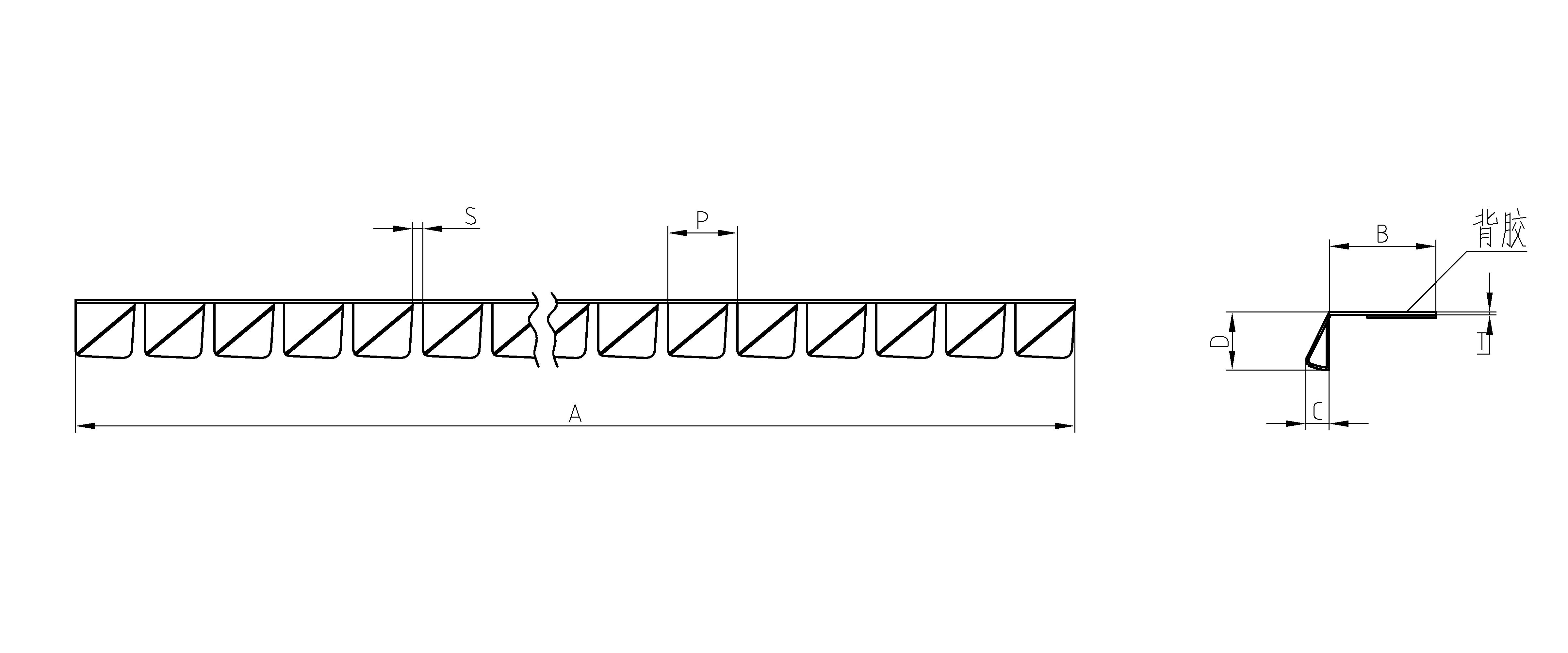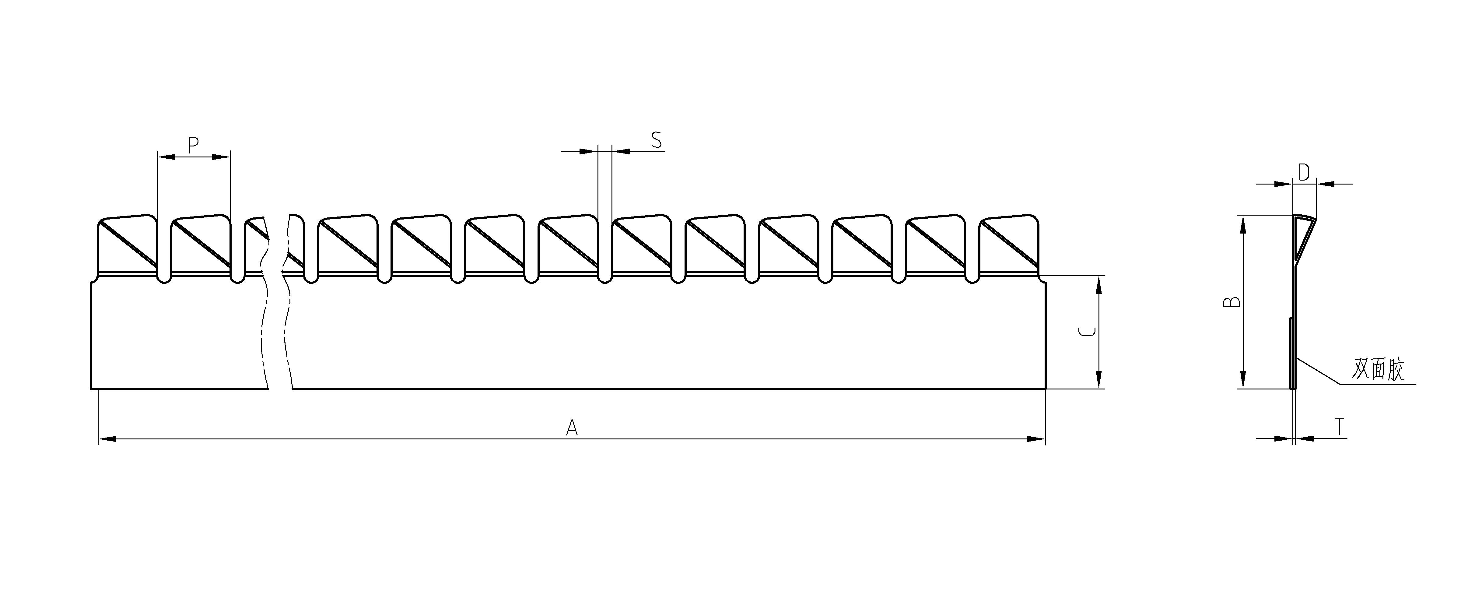 双向扭转型指形簧片,从图中可以看到,在压敏胶粘合面的两侧,都设计有可扭转折叠的指形结构。相当于一次安装,起到了两条簧片的作用,再次节省了安装空间。