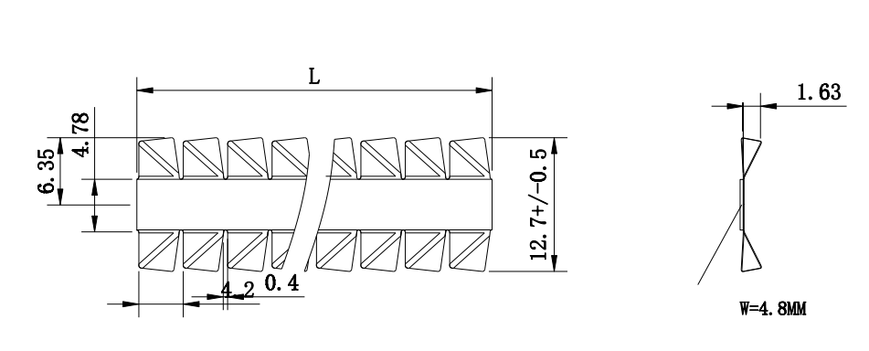 • 直角扭转型指形簧片,使用时的安装面和接触配合面,呈互相垂直的空间关系