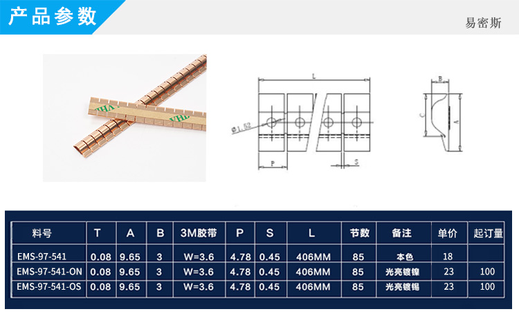 EMS易密斯,2009年创立于昆山,主要产品为EMI铍速8官方网站片、不锈钢弹片、导电泡棉和其他配套电子材料,是目前华东最具规模、产品最齐全的民用电子设备EMI电磁干扰屏蔽材料解决方案提供商。