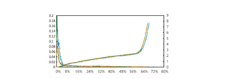 如下图可知,金属簧片在被压缩15%-60%的范围内,压缩电阻很小,且几乎没有波动;同时,压缩力在此范围内也相对小,也没有突然增大,这就是为什么我们经常推荐客户设计间隙值为材料压缩30%的值的原因。请咨询我们的工程师提供一对一设计和产品选择。