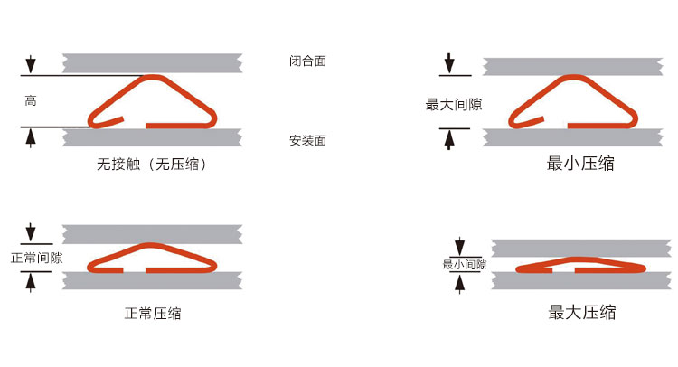 在最大间隙情况下,弹片的压缩率必须为约25%;弹片可压缩至50%的高度(或更多)。