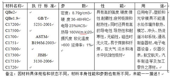 铍铜是一种过饱和固溶体铜基合金,是机械性能,物理性能,化学性能及抗蚀性能良好结合的有色合金,经固溶和时效处理后,具有与特殊钢相当的高强度极限,弹性极限,屈服极限和疲劳极限,同时又具备有高的导电率,导热率,高硬度和耐磨性,高的蠕变抗力及耐蚀性,广泛应用于制造各类模具镶嵌件,替代钢材制作精度高,形状复杂的模具,焊接电极材料,压铸机,注塑机冲头,耐磨耐蚀工作等。铍铜带应用于微电机电刷,手机、电池、产品上,是国民经济建设不可缺少的重要工业材料。